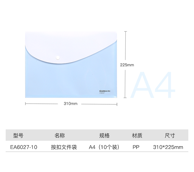 齐心(Comix)10只A4透明按扣文件袋资料收纳袋塑料防水档案袋EA6007-10蓝