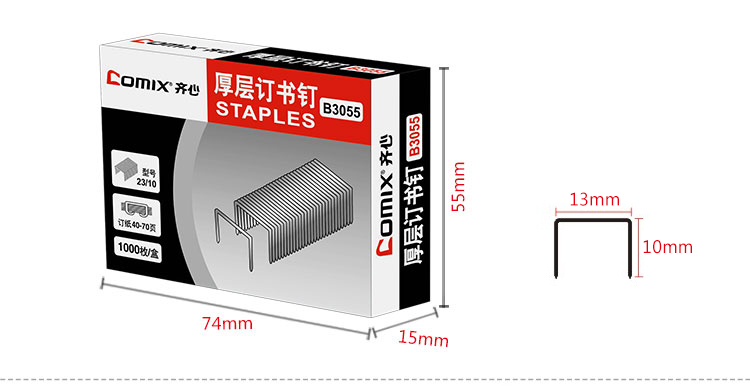 齐心(Comix)订书钉/订书针(23/10)70页1000枚/盒B3055