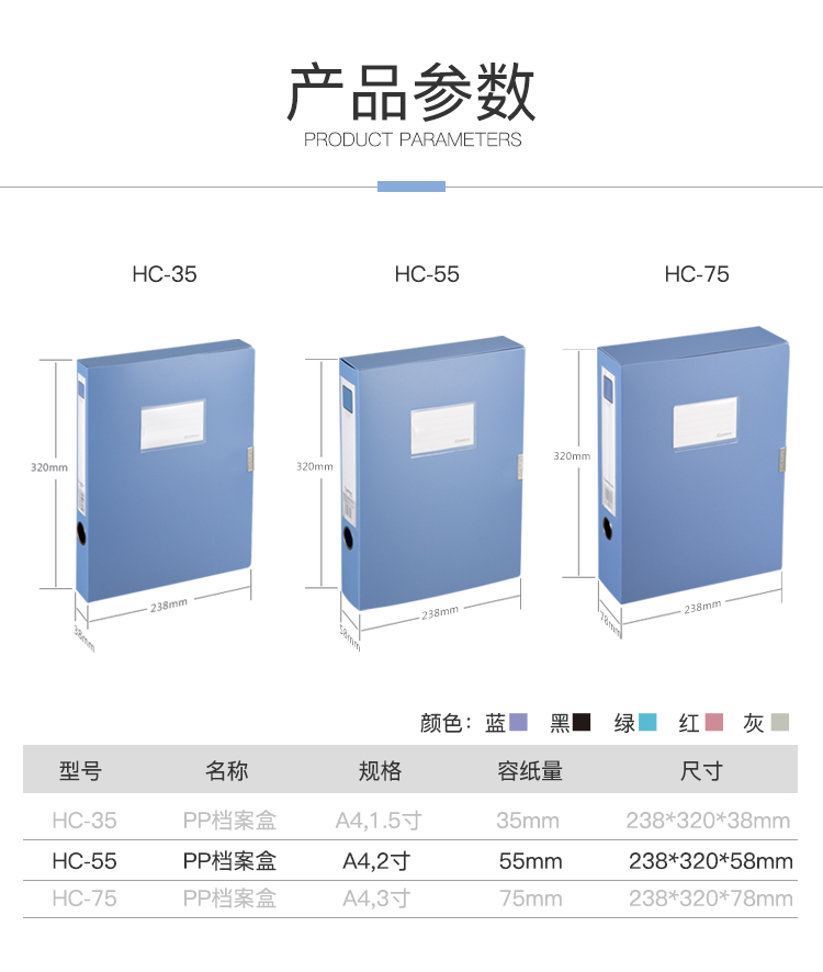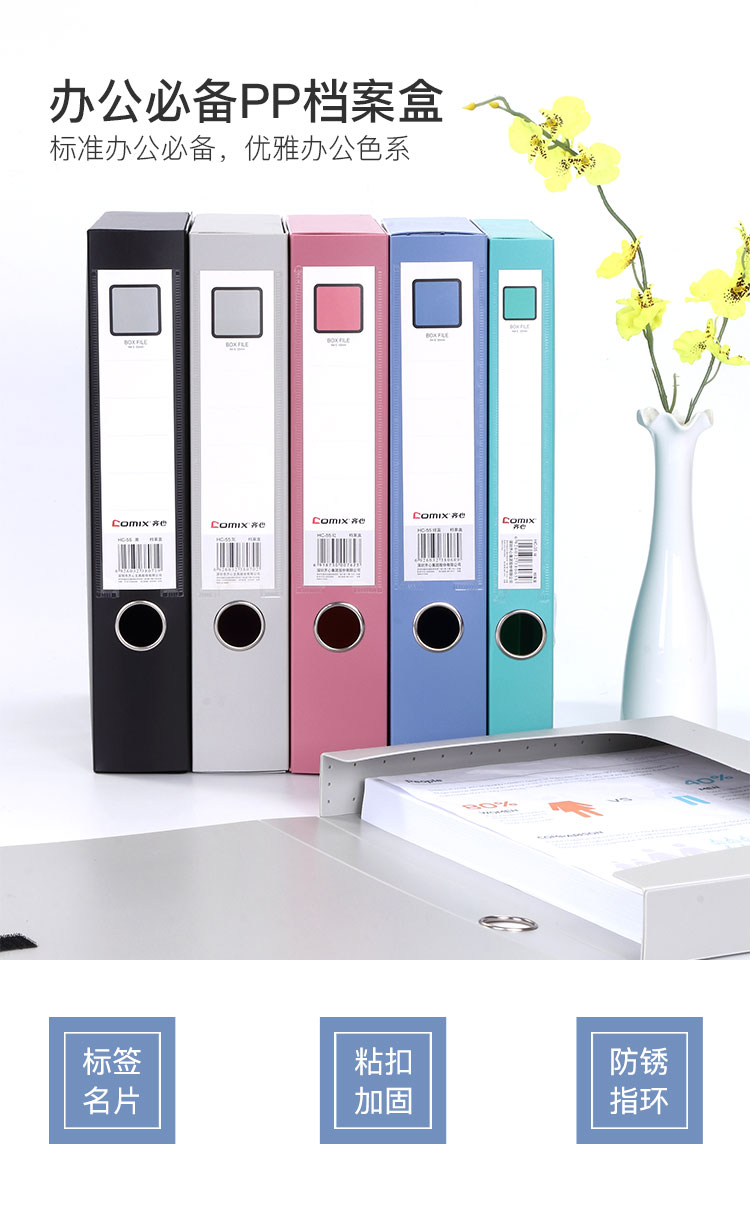 齐心(Comix)HC-55 55mm加厚型粘扣档案盒/文件盒/资料盒A4黑色