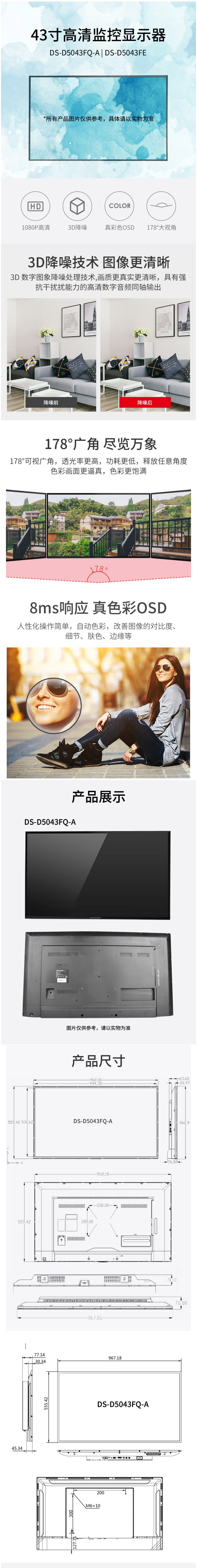 海康威视(HIKVISION)监视器22/32/43吋监控显示屏液晶显示器 43吋DS-D5043FQ-A