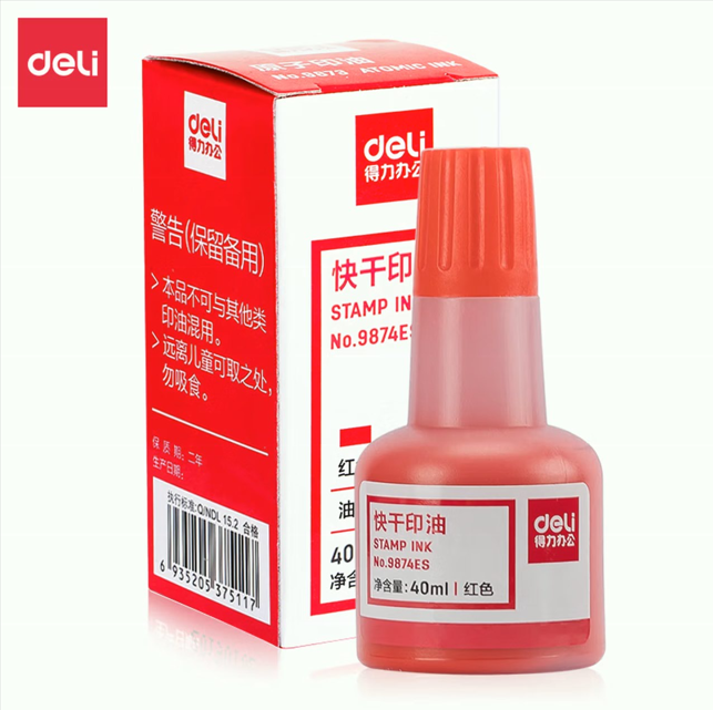 得力(deli) 印油 印章印油 快干印油 印泥油 财务办公印台印泥 快干印油 红色40ml