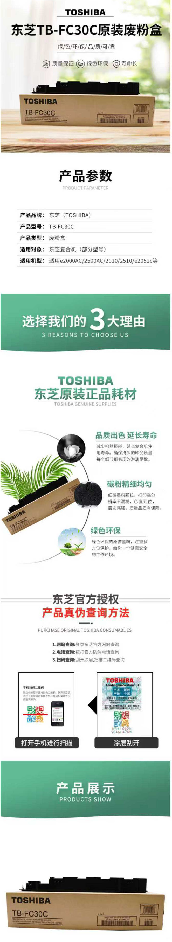 东芝(TOSHIBA)TB-FC30C 原装废粉盒2021/2521/2000/2010/2020/2051c/2110/2500/2510/2520/2610AC等FC425C FC505C